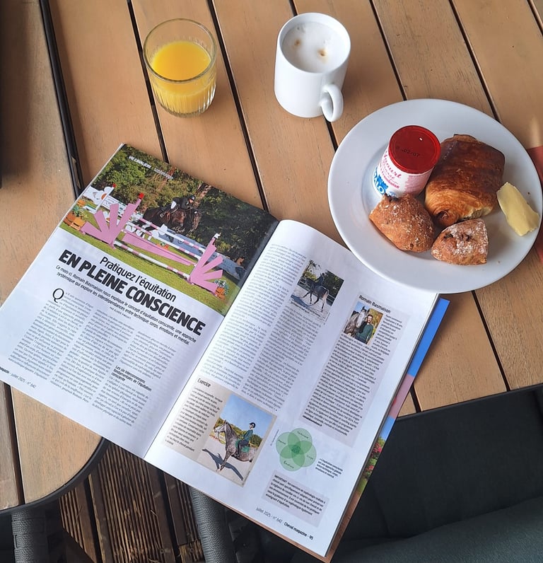 Depuis mai 2025, dans Cheval Magazine, j'ai la joie de partager avec vous des articles en lien avec l'équitation consciente & sophrologique.