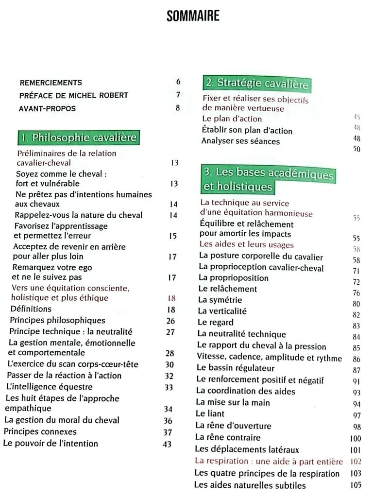 "Cet ouvrage est un guide, un recueil plein de vérités et de logique comprenant tout ce que les cavaliers doivent connaître et qui est si difficile à appliquer. Cela demande de la patience, un accès aux connaissances fondamentales de l’art équestre et une vigilance de chaque instant pour les appliquer, les développer et les ancrer.