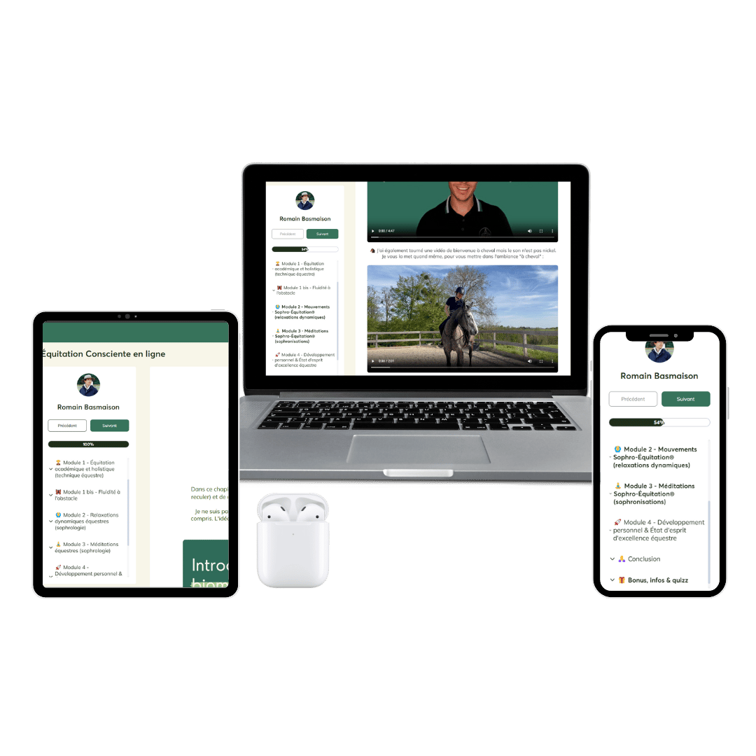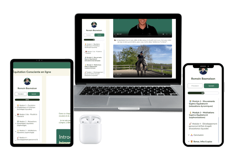 Le Programme en ligne d’Équitation Sophrologique vous guide vers une équitation plus fluide, juste et consciente